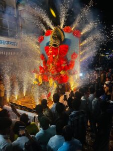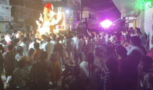 गणेश विसर्जन महोत्सव में देर रात निकली प्रतिमाएं, भक्ति में लीन होकर झूमते रहे भक्त, ग्रहण के चलते ढकी रही भगवान की प्रतिमा