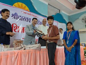 इस अवसर पर संस्था द्वारा आयोजित टैलेंट हंट प्रतियोगिता में स्थान बनाने वाले छात्रों को अतिथियों द्वारा पुरस्कृत किया गया जिसमे हिंदी माध्यम में प्रथम स्थान पर विकास साहू पिता रामायण साहू मां दंतेश्वरी हाई स्कूल , द्वितीय स्थान पर नमन साहू पिता केशव राम साहू सर्वोदय उच्चतर माध्यमिक विद्यालय, तृतीय स्थान पर भावना साहू पिता भूपेंद्र साहू नाथूजी जगताप उ.मा. शाला, चतुर्थ स्थान पर कु. सुप्रिया देवांगन पिता सतीश कुमार देवांगन मां दंतेश्वरी हाई स्कूल, पंचम स्थान पर कु. भूमिका देवांगन पिता संतराम देवांगन स्वामी आत्मानंद उत्कृष्ट हिंदी माध्यम विद्यालय हटकेशर, तथा अंग्रेजी माध्यम में प्रथम कु. आस्था भोजवानी पिता देवानंद भोजवानी सेंट जेवियर स्कूल, द्वितीय स्थान पर अक्षधा शर्मा पिता आर के शर्मा सेंट जेवियर स्कूल, तृतीय स्थान पर अक्षय कुमार जैन पिता हितेश कुमार जैन दिल्ली पब्लिक स्कूल सांकरा चतुर्थ स्थान पर भाविक चोपड़ा पिता राजकुमार चोपड़ा दिल्ली पब्लिक स्कूल, सांकरा एवं पंचम स्थान पर ओम गोविंद देवांगन पिता हरीश देवांगन नूतन इंग्लिश हायर सेकेंडरी स्कूल ने प्राप्त किया. परीक्षा में स्थान प्राप्त करने वाले सभी छात्र छात्राओं को अतिथियों द्वारा रजत पदक एवं स्मृति चिन्ह प्रदान कर सम्मानित किया गया। कार्यक्रम के मुख्य अतिथि डॉ सुमंत शेखर पाढ़ी ने अपने उद्बोधन सभी गुरुजनों को बधाई देते हुए कहा कि आज हम जो भी पद में ये हमारे गुरुओं की दें है बिना गुरु के कोई आगे नहीं बढ़ सकता । आज पेरेंट अपने बच्चों के ठीक से पहचान नहीं पा रहे की वो क्या कर रहे है वो अपने बच्चों के लिए टीचर से भी उलझने को तैयार है। जबकि टीचर का पहले बहुत सम्मान करते थे लेकिन आज वो सम्मान देखने को नहीं मिलता।आज बच्चों के यह में मोबाइल आ गया है इससे उनकी पढ़ाई तो प्रवित हो रही है साथ ही साथ बहुत ज्यादा हेल्थ इशू भी आ रहा है छोटे छोटे बच्चों की आंखों की समस्या, गलत खानपान एवं मो.लेपटॉप पर देर तक रहने से से हार्ट की भी समस्या दिनोदिन देखने को मिल रही है जम बच्चों के खानपान का विशेष ध्यान रखे साथ ही बच्चों को मो.से ज्यादा दूरी बना कर रखने का प्यास करे। अतिथि विशेष सूरज सिंह परिहार ने कहा इस कार्यक्रम में आकर मैं हर्षित हूं भारतीय परिपाटी एवं सनातन परंपराओ को आपने सबने जीवित रखे हुए है.संस्था की ओर से सेवानिवृत्ति प्रधानाचार्य नवीन चंद्राकर एवं तेजराम साहुप्राथमिक शाला सेलदीप कुरूद का सम्मान शाल श्रीफल एवं स्मृति चिन्ह प्रदान कर किया गया.संस्था द्वारा शिव सिंग वर्मा कन्या उ.मा.शा.वि., नाथूजी जगताप उ.मा.वि., डॉ. शोभाराम देवांगन उच्च मा.वि., शासकीय उच्च मा.शा.वि.कोलियरी, शा. उ. मा. वि., रुद्री, शासकीय उच्च मा.शा. वि. सोरम के आर्थिक 