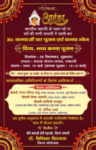 26 को होगा 351 कन्याओं का पूजन एवं कन्या भोज का आयोजन
