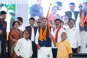 धमतरी 23 सितंबर 2025/ प्रदेश के मुख्यमंत्री श्री विष्णु देव साय आज कुरूद विधानसभा क्षेत्र के ग्राम करेली बड़ी में आयोजित प्रदेश स्तरीय महतारी सदन के लोकार्पण समारोह में शामिल हुए। उन्होंने करेली बड़ी में मंच से छत्तीसगढ़ प्रदेश के 51 महतारी सदन का रिमोट से बटन दबाकर शुभारंभ किया। इसके अलावा ग्राम संपदा एप्प तथा मनरेगा की समग्र जानकारी पर आधारित नागरिक सूचना पटल (क्यू आर कोड) का भी शुभारंभ किया। साथ ही ’लखपति दीदी/ महतारी सदन और ’’मॉं अभियान’’ पुस्तिका का विमोचन किया। इस अवसर पर उप मुख्यमंत्री एवं पंचायत एवं ग्रामीण विकास तथा गृहमंत्री श्री विजय शर्मा, राजस्व एवं जिले के प्रभारी मंत्री श्री टंकराम वर्मा, महासमुंद लोकसभा क्षेत्र की सांसद श्रीमती रूपकुमारी चौधरी, विधायक कुरूद श्री अजय चन्द्राकर प्रमुख रूप से उपस्थित थे।