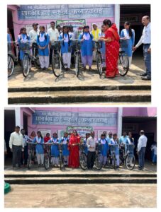 धमतरी। शासकीय हाई स्कूल कलारताई में निशुल्क सरस्वती साइकिल योजना के अंतर्गत बालिकाओं को साइकिल प्रदान किया गया। मुख्य अतिथि जिला पंचायत सभापति श्रीमती मोनिका देवांगन ने इस अवसर पर कहा कि नि:शुल्क सरस्वती साइकिल योजना बालिकाओं के लिए सरकार की महत्वाकांक्षी योजना है इसके लिए हम प्रदेश के मुखिया विष्णु देव साय जी को बहुत धन्यवाद देते हैं। साइकिल आवागमन का सुलभ संसाधन है हमारी बेटियों को दूर स्कूल में पढऩे जाने के लिए सुविधा होगी ।बिना किसी परेशानी की हमारी बेटियां अपनी पढ़ाई को निरंतर जारी रख सकती हैं। इस अवसर पर ग्राम के सरपंच ध्रुव उपसरपंच माधवेन्द्र हिरवानी डॉक्टर गजेंद्र साहू बंजारी सरपंच टिकेश्वरी ध्रुव शाला प्रबंधन समिति के अध्यक्ष निर्मल ध्रुव सभी सदस्य गण शाला के प्राचार्य पटेल सर सभी शिक्षक गण सहित सभी विद्यार्थी उपस्थित रहे।