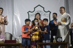 दिल्ली पब्लिक स्कूल, धमतरी में नवरात्रि की पावन पर्व को हर्षोल्लास के साथ गरबा रासोत्सव के रूप में संगीतमय वातावरण में मनाया गया। इस अवसर पर मुख्य अतिथि दिल्ली पब्लिक स्कूल धमतरी के डायरेक्टर धीरज अग्रवाल एवं डायरेक्टर श्रीमती निधि अग्रवाल रहे। अतिथियों के द्वारा कार्यक्रम की शुरुआत फीता काटकर किया गया। तत्पश्चात गरबा रासोत्सव की शुरुआत आदि शक्ति मां दुर्गा जी की महाआरती से हुई, इसआरती में विद्यालय के शिक्षक सप्तर्षि रॉय द्वारा बंगाल की मोहक धुनुची नृत्य की प्रस्तुति दी गई।कार्यक्रम में विद्यालय के प्राचार्य डॉ. नितिन कुमार शर्मा, समन्वयक सतप्रीत सिंह धंजाल, रोहित कुमार, सुश्री अर्शिता अरोड़ा, शिक्षकगण, अभिभावक एवं मुख्य व किड्स कैंपस के छात्र-छात्राएँ सम्मिलित हुए। इस गरबा रासोत्सव में विभिन्न प्रतियोगिताओं का आयोजन किया गया जैसे – सोलो किड्स, सोलो जूनियर, सोलो सीनियर, ओपन गरबा, ग्रुप जूनियर गरबा, कपल गरबा, मी एंड माय किड्स, विभिन्न प्रकार के प्रतियोगिताओं का आयोजन किया गया। इस विभिन्न प्रतियोगिताओं में सारे प्रतिभागियों ने बड़े उत्साह के साथ अपनी कला का प्रदर्शन करते हुए प्रथम, द्वितीय, स्थान प्राप्त कर सबका मन मोह लिया।विजेताओं को मुख्य अतिथियों द्वारा सम्मानित व पुरस्कृत किया गया। विभिन्न प्रतियोगिताओं में जिन्होंने प्रथम द्वितीय स्थान प्राप्त किया परिणाम इस प्रकार रहे. सोलो किड्स प्रथम – प्रेशा संघवी, द्वितीय – बनीत कौर, सोलो जूनियर प्रथम – दर्शान अग्रवाल, द्वितीय – रुद्र तन्ना, तृतीय – प्लाक्षी पहूजा, सोलो सीनियर प्रथम – रोली जैन, द्वितीय – मननत आहूजा, ओपन प्रतियोगिता प्रथम – श्वेता पंजवानी, द्वितीय (नाम प्रतीक्षित), ग्रुप जूनियर श्रेणी प्रथम – रुद्र तन्ना, अयान महावर एवं शनाया पटेल, द्वितीय – आर्या देवांगन, फलक दामा एवं होन्शिका झा, कपल गरबा प्रथम – श्री एवं श्रीमती अर्पित जैन, द्वितीय – श्री एवं श्रीमती विक्की बजाज धमतरी की मी एंड माय किटी मेट्स टीम ने विशेष प्रस्तुति देकर कार्यक्रम में आकर्षण और रंग भर दिए।सर्वश्रेष्ठ परिधान पुरस्कार विक्की बजाज एवं श्रीमती पिहू बजाज को प्रदान किया गया। इस प्रतियोगिताओं के साथ विद्यालय के संगीत ग्रुप एवं संगीत शिक्षक वेद प्रकाश साहू एवं पार्थ पांडे एवं बच्चों के द्वारा लाइव गरबा का प्रदर्शन कर कार्यक्रम को मनमोहन बनाया।विभिन्न प्रतियोगिताओं के निर्णायक रहे श्रीमती तारा जावर एवं श्रीमती पुजा रणसिंह। इस गरबा रासोत्सव की शुभकामनाएं एवं महत्व को बताते हुए विद्यालय के प्राचार्य डॉ. नितिन कुमार शर्मा ने अपने उद्बोधन में कहा कि नवरात्रि पर्व शक्ति की आराधना एवं उपासना का एक पर्व है। गरबा एक ऐसा पवित्र नृत्
