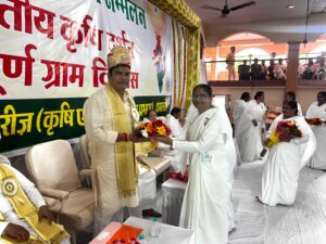 धमतरी – ब्रह्माकुमारीज संस्था के कृषि एवं ग्राम विकास प्रभाग द्वारा हरदिहा साहू समाज भवन धमतरी में आध्यात्मिक किसान सम्मेलन का आयोजन किया गया, जिसका विषय रहा भारतीय कृषि दर्शन एवं ग्राम विकास। इस अवसर पर धमतरी विधायक ओंकार साहू अतिथि के रूप में उपस्थित रहे और किसानों को संबोधित करते हुए कहा कि भारतीय कृषि केवल खेती नहीं, बल्कि हमारे जीवन का दर्शन और संस्कृति की आत्मा है। जब खेती में अध्यात्म जुड़ता है, तब न केवल धरती उपजाऊ बनती है, बल्कि मनुष्य का जीवन भी समृद्ध और संतुलित होता है।विधायक साहू ने अपने वक्तव्य में कहा कि आधुनिकता के दौर में जहां खेती मुनाफे और रासायनिक उत्पादन की दिशा में बढ़ रही है, वहीं भारतीय परंपरा हमें प्रकृति के साथ तालमेल रखने की सीख देती है। उन्होंने किसानों से आग्रह किया कि वे प्राकृतिक एवं जैविक खेती को अपनाकर आने वाली पीढ़ियों के लिए धरती और पर्यावरण को सुरक्षित रखें।उन्होंने यह भी कहा कि ग्राम विकास का सिर्फ सड़कों और भवनों का निर्माण नहीं है, बल्कि यह तब सार्थक होगा जब गांव के हर व्यक्ति का आर्थिक, सामाजिक और मानसिक उत्थान हो। इसके लिए आध्यात्मिक जागरूकता और आत्मिक शांति अनिवार्य है।कार्यक्रम में ब्रह्माकुमारीज की दीदीयों द्वारा खेती में सकारात्मक ऊर्जा कैसे बढ़ाएं विषय पर मार्गदर्शन दिया गया। किसानों ने इस कार्यक्रम में भाग लेकर अपना अनुभव साझा किया।अंत में विधायक साहू ने ब्रह्माकुमारीज संस्था के प्रयास की सराहना करते हुए कहा कि यदि हर किसान खेती को पूजा और धरती को माता के रूप में देखे, तो न केवल अन्न की गुणवत्ता बढ़ेगी बल्कि समाज में नैतिकता और सद्भाव भी स्थापित होगा।मौके पर कार्यक्रम में विधायक ओंकार साहू , राजू भाई , हेमलाल दीदी , सुमंत भाई , सरिता दीदी साथ में बड़ी संख्या में किसान , ग्रामीण जनप्रतिनिधि एवं समाज के गणमान्य नागरिक उपस्थित रहे।