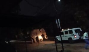 दंतेल हाथी पहुँचा रुद्री कलेक्टर बंगला क़े पास,पुलिस व वन विभाग द्वारा हाथी की गतिविधियों पर रखी जा रही है नजर