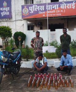 आरोपियों के विरुद्ध थाना बोराई द्वारा धारा 34(2),36,59(क) आबकारी एक्ट के तहत कार्यवाही कर भेजा गया जेल