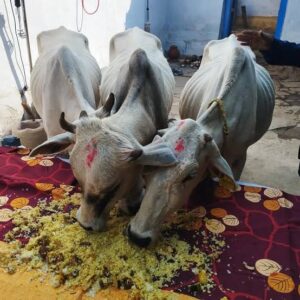 पारंपरिक संस्कृति के अनुसार गौ माता की पूजा अर्चना कर खिलाई गई खिचड़ी