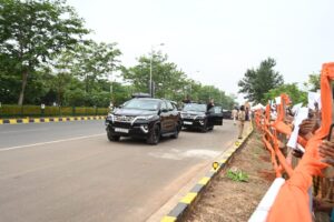 काफिला जैसे ही “जैनम मानस के सामने – जीएसटी पॉइंट” पहुँचा, हजारों की संख्या में नागरिकों ने तिरंगा लहराते हुए प्रधानमंत्री का आत्मीय स्वागत किया।