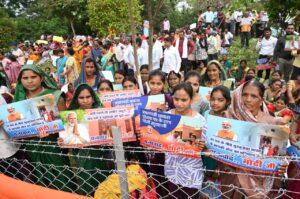 महिलाओं ने “नारी शक्ति – मोदी सरकार” के नारे लगाकर प्रधानमंत्री का स्वागत किया। पूरा क्षेत्र उल्लास, सम्मान और अनुशासन के वातावरण में डूबा हुआ है।