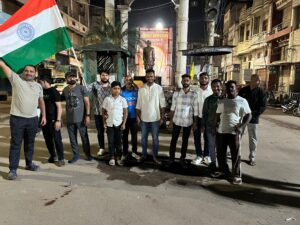 धमतरी। भारतीय महिला क्रिकेट टीम द्वारा पहली बार विश्व कप जीतने के बाद शहर के क्रिकेट प्रेमियों ने रात में मकई चौक में पटाखे फोड़ कर एक दूसरे को बधाई देकर खुशी का इजहार किया। इस दौरान शहर के क्रिकेट प्रेमी योगेश रायचुरा ने भारतीय टीम की जर्सी पहनकर हाथो में तिरंगा झण्डा लेकर जीत की जश्न अन्य क्रिकेट प्रेमियों के साथ उत्साह पूर्वक मनाया।