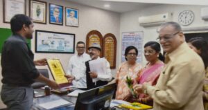 पेंशनरों को रिटायर के तत्काल बाद, पेंशन आदेश, ग्रेज्युटी एवं अन्य देय स्वत्वों का चेक भुगतान हेतु सौंपा ज्ञापन