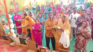 आमापारा में श्रीमद भागवत कथा सुनने के लिए उमडे़ श्रद्धालु, शाम को निकली शोभायात्रा, आज होगा कथा का समापन