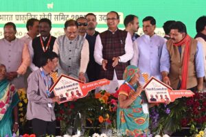 केन्द्रीय कृषि मंत्री श्री चौहान ने अंगारमोती मां और छत्तीसगढ़ महतारी को प्रणाम करते हुए समारोह को संबोधित किया। उन्होंने कहा कि छत्तीसगढ़ आकर उन्हें अपने ही प्रदेश जैसा अनुभव होता है। मुख्यमंत्री श्री विष्णुदेव साय के नेतृत्व में राज्य में विकास की नई बयार बह रही है। प्रधानमंत्री किसान सम्मान निधि की 21वीं किश्त किसानों को सशक्त बनाने की दिशा में एक महत्वपूर्ण कदम है। एकीकृत खेती, ड्रिप और स्प्रिंक्लर पद्धति अपना रहे किसानों को सरकार द्वारा सब्सिडी प्रदान की जा रही है। ग्रीन हाउस और पॉली हाउस निर्माण पर भी केंद्र सरकार विशेष प्रोत्साहन दे रही है। मंत्री श्री चौहान ने कहा कि अब तक देश में 5 लाख किसानों की फार्मर आईडी तैयार की जा चुकी है, जिसमें खेती-किसानी संबंधी सभी जानकारी उपलब्ध रहेगी। उन्होंने कहा कि नक्सल प्रभावित क्षेत्रों में भी प्रधानमंत्री आवास योजना के माध्यम से पक्के मकान का सपना पूरा हो रहा है। इसी तरह मनरेगा मजदूरी के माध्यम से ग्रामीण क्षेत्रों में मकान निर्माण और अब जल संरक्षण कार्यों को भी बढ़ावा दिया जा रहा है। उन्होंने छत्तीसगढ़ सरकार की ‘महतारी वंदन योजना’ की सराहना करते हुए कहा कि महिला सशक्तिकरण की दिशा में यह महत्वपूर्ण कदम है। उन्होंने प्रदेश के मुख्यमंत्री श्री विष्णु देव साय को बधाई देते हुए कहा कि इससे महिलाओं का सम्मान बढ़ा है।