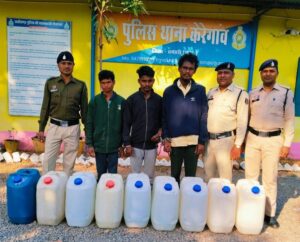 जहां तीनों आरोपी अवैध रूप से देशी महुआ शराब रखकर बिक्री करते पाए गए। मौके से पुलिस ने 9 जार्किन (प्रत्येक 30 लीटर) में कुल 270 लीटर देशी कच्ची महुआ शराब (कीमत लगभग 27,000 रूपये ) 3 मोबाइल फोन कीमत 14,500 रुपये,नगद बिक्री रकम 617 रुपये, कुल 42,117 रुपये का माल जप्त किया।गिरफ्तारी के पश्चात थाना केरेगांव में अपराध क्रमांक 27/25, धारा 34(2) आबकारी एक्ट के तहत अपराध पंजीबद्ध कर तीनों आरोपियों को न्यायिक रिमांड पर जेल भेज दिया गया है।गिरफ्तार आरोपियो मे लिलेश सिन्हा पिता स्व. सुमरन