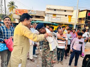 धमतरी विधायक ओंकार साहू द्वारा नगर पंचायत आमदी निवासी डुगेश्वर साहू के सुपुत्र गगन साहू का उनके अग्निवीर सेना में चयन होने के उपरांत गृहग्राम आगमन पर हर्ष एवं गर्व के साथ भव्य स्वागत तथा सम्मान किया गया। गाँव के मुख्य चौक से लेकर घर तक उत्साह का वातावरण रहा। ग्रामीणों, युवाओं, सामाजिक संगठनों एवं जनप्रतिनिधियों ने भी गगन साहू का गर्मजोशी से अभिनंदन किया।गगन साहू ने अपनी अनुशासन, कठिन परिश्रम, धैर्य और अटूट देशभक्ति से भारतीय सेना जैसी प्रतिष्ठित सेवा में स्थान प्राप्त कर न केवल अपने परिवार का नाम रोशन किया है, बल्कि पूरे आमदी क्षेत्र और धमतरी जिले को गौरवांवित किया है। कठिन चयन प्रक्रिया में सफलता प्राप्त करना किसी चुनौती से कम नहीं होता, परंतु गगन साहू ने यह सिद्ध कर दिया कि मजबूत इच्छा शक्ति और निरंतर प्रयास से हर लक्ष्य प्राप्त किया जा सकता है।इस अवसर पर विधायक ओंकार साहू ने कहा कि गगन साहू जैसे ऊर्जावान और राष्ट्रभक्त युवा हमारे समाज की असली शक्ति हैं। भारतीय सेना में चयन होना न सिर्फ व्यक्तिगत उपलब्धि है, बल्कि पूरे क्षेत्र का सम्मान है। यह हर युवक के लिए प्रेरणा है कि समर्पण और कड़ी मेहनत के दम पर बड़े से बड़ा मुकाम हासिल किया जा सकता है।” विधायक साहू जी ने गगन को आशीर्वाद देते हुए उनके उज्ज्वल भविष्य और सफल सैन्य सेवा की शुभकामनाएँ भी दीं। मौके पर नगर पंचायत अध्यक्ष ज्योति साहू , पूर्व नगर पंचायत अध्यक्ष मनोज साहू, कोमल साहू , एमन साहू , पारसमणि साहू, चित्तेंद्र साहू , खोजू साहू , नीलकंठ ध्रुव साथ में बड़ी संख्या में ग्रामीणजन उपस्थित रहे.गाँव के वरिष्ठजनों ने भी कहा कि गगन की यह उपलब्धि आने वाली पीढ़ियों में देशसेवा के प्रति उत्साह और जागरूकता बढ़ाएगी। माता-पिता और परिजनों ने सभी के स्नेह एवं शुभकामनाओं के लिए धन्यवाद ज्ञापित किया।गाँव-प्रदेश के गौरव बने गगन साहू जी को हार्दिक बधाई, तथा आगे की सेवा यात्रा के लिए सुख-समृद्धि और सफलता की शुभकामनाएँ।