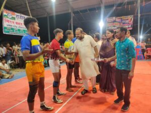 कबड्डी का खेल हमारे छत्तीसगढ़ का पारंपरिक खेल है जो हर मौसम में आयोजित होते रहता है इनको खेलने वाले खिलाड़ी शारीरिक रुप से बहुत मजबूत होते है. आज जो टिम जीती है उनको बधाई और जो उपविजेता रही है उन्हे भी बधाई 32 टीमों में दूसरा आना बहुत बड़ी उपलब्धि है एक हार से निराश ना होकर अगला लक्ष्य नंबर वन कि ओर रखे. आप सबको सफल आयोजन कि बधाई.कार्यक्रम में सरपंच खुबलाल दिवान,सेवक सोनकर मोहन साहू किशन सोनकर किशून सोनकर प्रादीप सोनबेर भुपेंद्र सोनकर टीकाराम निषाद प्रेमचंद साहु दीनानाथ साहु किशन साहु गुलाब पैकरा अरुण साहु शैलेन्द्र टंडन मनहरण साहु नरेन्द्र साहु हीरामन साहु खुमेश्वर साहु तेजराम साहु रमेश निषाद सहित समस्त पंच, उपस्थित थे वैभव चन्द्राकर, महिम शुक्ला, चंद्रप्रकाश देवांगन,कुलदीप गुरुपंच, कोमल साहु, उमेश कंडरा एवं न्यु यंग स्टार कबड्डी दल, लक्की स्टार क्लब के सभी सदस्य सैकड़ो दर्शकों के साथ उपस्थित रहे.