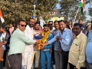 स्वर्ण पदक विजेता खिलाड़ी नरेन्द्र कुमार का नगरवासियों की ओर से नगरपालिका अध्यक्ष ज्योति भानु चन्द्राकर ने किया स्वागत