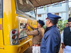मेनोनाइट इंग्लिश हायर सेकेंडरी स्कूल, रत्नाबांधा धमतरी में छात्र – छात्राओं को यातायात नियमों एवं नशा के दुष्प्रभावों के बारे में विस्तारपूर्वक जानकारी दी गई। विद्यार्थियों ने स्वयं नियमों का पालन करने तथा परिवारजनों को जागरूक करने का संकल्प लिया।साथ ही स्कूल बस चालकों का एल्कोमीटर से परीक्षण किया गया, जिसमें कोई भी चालक शराब सेवन करते हुए नहीं पाया गया।यह विद्यालयीन परिवहन सुरक्षा के प्रति सकारात्मक एवं सराहनीय संदेश देता है।स्कूल बसों में भी यातायात जागरूकता पोस्टर लगाए गए।हेलमेट – सुरक्षा का अनमोल कवच, हेलमेट केवल कानूनी बाध्यता नहीं, बल्कि जीवन की सुरक्षा का मजबूत कवच है।सड़क दुर्घटनाओं में होने वाली मृत्यु एवं गंभीर चोटों से बचाव हेतु हेलमेट का उपयोग अत्यंत आवश्यक है। विशेष रूप से चालक के साथ पीछे बैठने वाले व्यक्ति के लिए भी हेलमेट पहनना अनिवार्य है, क्योंकि कई दुर्घटनाओं में यह पाया गया है कि चालक तो सुरक्षित रहता है, जबकि पीछे बैठे बिना हेलमेट वाले व्यक्ति को गंभीर चोटें लगती हैं या उनकी मृत्यु तक हो जाती है।