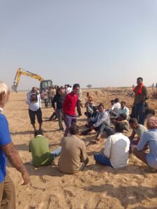 सीमांकन की मांग व रेत खनन के विरोध में ग्रामीणों ने पकड़ा दो चैन माउंटेन व हाईवा को