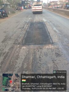 भखारा नगर में सड़क की खराब स्थिति के कारण सोमवार को एक बुजुर्ग व्यक्ति के बाइक से फिसलकर दुर्घटनाग्रस्त होने की घटना सामने आई। घटना की जानकारी मिलते ही रोहिणी साहू एवं संतोष साहू ने नगर पंचायत अध्यक्ष श्रीमती ज्योति हरख जैन से चर्चा कर मामले से अवगत कराया।