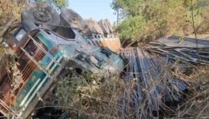 पुलिया से गिरी सरिया से भरी ट्रक, चालक गंभीर