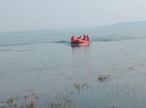 पुलिस द्वारा बांध में की जा रही युवक की तलाश, गहराई अधिक होने से नहीं चल पा रहा पता