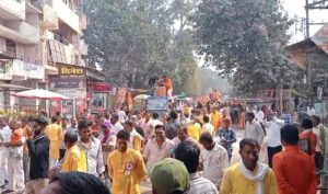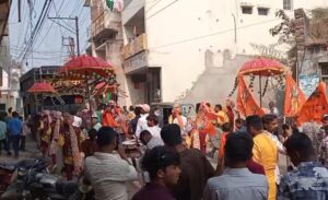 राम मंदिर प्राण प्रतिष्ठा वर्षगांठ के अवसर पर निकाली गई भव्य शोभायात्रा