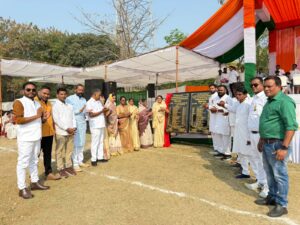 कुरुद। गणतंत्र दिवस पर नगर पालिका कार्यालय भवन में कुरूद नगर पालिका अध्यक्ष ज्योति भानु चन्द्राकर के करकमलों से ध्वजारोहण किया गया, पश्चात उन्होने सभी को बधाई दी। नगर के चौक चौराहों में वार्डों के पार्षदों द्वारा ध्वजारोहण किया गया, विभिन्न समाजिक संगठनों द्वारा भी चयनित जगहों में गणमान्य नागरिकों द्वारा ध्वजारोहण किया गया। मुख्य ध्वजारोहण समारोह एवं नागरिकों का सम्मान समारोह लाल बहादुर शास्त्री खेल मैदान कुरूद में मुख्यअतिथि ज्योति भानु चन्द्राकर अध्यक्ष नगर पालिका कुरूद द्वारा ध्वजारोहण कर परेड की सलामी ली। उन्होने कहा विष्णु के सुशासन, उपमुख्यमंत्री अरुण साव विधायक अजय चन्द्राकर के निरंतर सहयोग से निरंतर विकास किया जा रहा है, इसके साथ साथ विभिन्न समाजिक सेवा और धार्मिक सेवाओं के माध्यम से पिछले 10 महीनो में हर वर्गों के लिए सभी तरह से कार्य नये परिषद के साथियों के सहयोग कार्य किया जा रहा है, कुरूद वासियों के लिए यह 10 माह उपलब्धियों से भरा रहा, नगर पालिका अध्यक्ष ने कुरूद के समस्त नागरिकों को संविधान निर्माता डा. भीमराव अम्बेडकर जी के विशाल प्रतिमा का लोकार्पण करते हुए गणतंत्र दिवस की बधाई दिये।