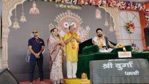 अरमरीकला में पं. युवराज पाण्डेय की कथा श्रवण कर लेखराम साहू ने लिया आशीर्वाद