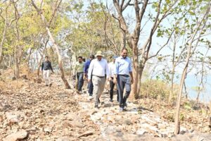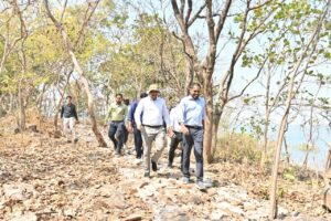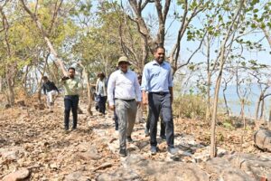 धमतरी-कलेक्टर अबिनाश मिश्रा ने गंगरेल क्षेत्र में पर्यटन को बढ़ावा देने हेतु संचालित विभिन्न विकास कार्यों तथा ग्राम ठेमली अंतर्गत ठेमली आईलैंड में प्रगति पर चल रहे कार्यों का स्थलीय निरीक्षण कर अधिकारियों को आवश्यक दिशा-निर्देश दिए। इस दौरान कलेक्टर श्री मिश्रा सहित अन्य अधिकारियों ने पैदल चलकर पाथवे निर्माण कार्य का निरीक्षण किया और व्यू प्वाइंट और वाच टावर हेतु स्थल का भी चिन्हांकन किया।