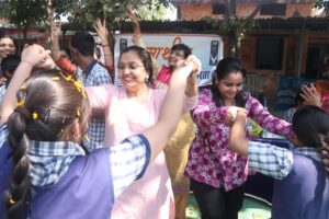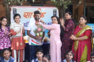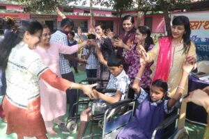 सार्थक स्कूल में विशेष बच्चों के संग मोढ़ महिला ग्रुप ने खेली फूलों की होली,गोल्ड मेडलिस्ट सत्यांशु दीप का किया सम्मान