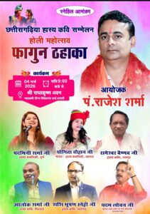 धमतरी में फागुन का उल्लास: 4 मार्च को गूंजेगा भव्य हास्य कवि सम्मेलन “फागुन ठहाका