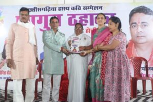 धमतरी-होली के अवसर पर राधा कृष्ण भवन शहर वासियों को कविताओं से सरोबार करने के लिए कवि सम्मेलन का आयोजन के साथी फूलों की होली ने एक अद्भुत छटा का निर्माण किया। जिसमें श्रृंगार की कविता की प्रस्तुति दिल्ली से आई हुई पद्मिनी शर्मा तथा आगरा की योग्यता चौहान ने करते हुए लोगों के दिलो में उतर जाने वाली काव्य पाठ से मंत्रमुग्ध कर दिया तो दूसरी ओर छत्तीसगढ़ी भाषा को कविताओं में शीर्षस्थ स्थान प्रदान करने में अपनी महत्वपूर्ण भूमिका प्रदान करने वाले कवि रामेश्वर वैष्णव ने एक से बढ़कर एक प्रस्तुति देते हुए कवि सम्मेलन को एक नहीं ऊंचाई प्रदान की। इसके साथ ही हास्य व्यंग्य की कविताओं में, ओमप्रकाश शर्मा,पद्मलोचन मुंहफट, शशिभूषण स्नेही द्वारा श्रोताओं का खूब मनोरंजन किया गया जिससे होली के दिन त्यौहार की खुशियों के साथ ही कविताओं के माध्यम से चार चांद लग गए। पूरे कवि सम्मेलन के संचालक को एक नई ऊंचाई पद्मलोचन शर्मा मुंहफट द्वारा दी गई। वही कवि सम्मेलन के प्रारंभिक उद्घाटन अवसर पर मुख्य रूप से उपस्थित ब्रह्माकुमारी ईश्वरीय विश्वविद्यालय की संयोजिका सरिता बहन जी द्वारा उपस्थित जनों से कहा कि समाज हमें बहुत कुछ देता है बदले में हमें उसे देने के अपने कर्तव्य का भी निर्वहन कर सामाजिक जिम्मेदारी को बखूबी निभाया जाना चाहिए। उन्होंने आगे बताया कि प्रकृति का यह नियम है कि धन और खुशी आप जितना बातों के उससे कई गुना वह वापस लौट कर प्राप्त होगी इस क्षेत्र में सार्वजनिक धरातल पर पंडित राजेश शर्मा का कार्य प्रमाणित रूप से स्वीकार्य होकर आम जनमानस के लिए समर्पित भाव का साक्षी है। वही आयोजक पंडित राजेश शर्मा द्वारा आयोजन के संबंध में प्रकाश डालते हुए कहा कि एक लंबे समय से होली के दिवस कवि सम्मेलन आयोजन किए जाने की परंपरा को इस वर्ष भी आगे बढ़ाया गया है और ईश्वर और आप सभी के आशीर्वाद, प्रेम एवं स्नेह के परिणाम स्वरूप आगे भी समर्थ मिलता रहे तो यह श्रृंखला निरंतर जारी रहेगी। इस अवसर पर प्रमुख से नगर निगम के पूर्व सभापति राजेंद्र शर्मा द्वारा शहर की गौरवशाली परंपराओं तथा जरूरतमंदों के सेवाभावी कार्यों के लिए पंडित राजेश शर्मा के योगदानों को रेखांकित करते हुए कहा कि ऐसे लोग समाज में अपने उत्कृष्ट कार्यो के कारण दूसरों के लिए प्रेरणा स्रोत बन जाते हैं ऐसे कार्य आगे चलकर निश्चित ही सामाजिक बदलाव का सूत्रधार भी बनता है।इस अवसर पर गोपाल प्रसाद शर्मा,जानकी प्रसाद शर्मा,भानु चंद्राकर,निर्मल बरड़िया, प्रकाश शर्मा,विकास शर्मा,