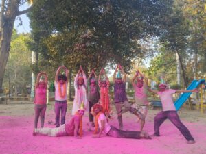 नेहरू गार्डन में होली के रंगों के साथ योग का सामूहिक अभ्यास