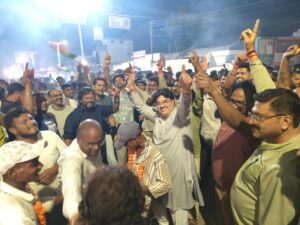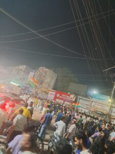 बाजेगाजे क़े साथ हाथों मे तिरंगा लिए जीत की खुशी मे जमकर थिरके क्रिकेट प्रेमी