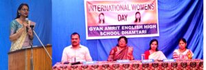 ज्ञान अमृत इंग्लिश हाईस्कूल धमतरी में अंतर्राष्ट्रीय महिला दिवस के अवसर पर मातृ सम्मेलन का आयोजन किया गया है। कार्यक्रम के मुख्य अतिथि श्रीमती प्रीति शांडिल्य (राज्यपाल द्वारा पुरुस्कृत शिक्षिका, धमतरी), विशेष अतिथि श्रीमती ज्योति लूनिया (लायनेस क्लब, धमतरी), श्रीमती पल्लवी बरडिया (सहायक प्राध्यापक बी.सी.एस स्नातकोत्तर महाविद्यालय, धमतरी) एवं अध्यक्षता विद्यालय के प्राचार्य विनोद कुमार पाण्डेय की उपस्थिति में संपन्न हुआ।