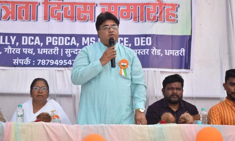 धमतरी । 15 अगस्त स्वतंत्रता दिवस के अवसर पर ओम लक्ष्मी कंप्यूटर इंस्टिट्यूट धमतरी द्वारा सांस्कृतिक कार्यक्रम का आयोजन इंडोर स्टेडियम, आमातालाब रोड में किया गया. इस अवसर पर भाजपा प्रदेश मंत्री रामू रोहरा अतिथि के रूप में उपस्थित रहे साथ ही सरिता बहन, डॉ एकता लॉज , उप पुलिस अधीक्षक विंकेश्वरी पिंदे , समाजसेवी शिवा प्रधान,वेद साहू,अविनाश दुबे भी विशेष रूप में उपस्थित रहे.इस मौके पर विभिन्न प्रकार की देशभक्ति,लोक नृत्य, देशभक्ति गीत, भाषण, रैंपवॉक आदि सांस्कृतिक का आयोजन किया गया. इस कार्यक्रम का उद्देश्य देश के विभिन्न राज्यों की संस्कृति, परंपरा, एवं नृत्य को दर्शाना रहा.रामू रोहरा ने कार्यक्रमों में उत्कृष्ट प्रस्तुति देने वाले छात्र छात्राओं को सम्मानित किया.
