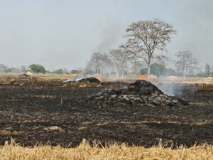 40-50 एकड़ खेत मे लगी भीषण आग, चना, सरसों और गेहूं की कई एकड़ फसल खाक, पैरावट भी जल कर राख