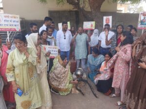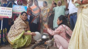 धरना स्थल पर चूल्हे में लकड़ी से आग जलाकर चाय बनाकर कर किया अनोखा प्रदर्शन