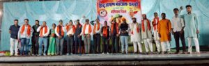 हिन्दू जागरण मंच धमतरी ने महाराणा प्रताप भवन में बलिदान दिवस की पूर्व संध्या 22 मार्च रविवार को भारत माता के चरणों पर दीप प्रज्वलन और वीर सपूतों अमर बलिदानियों भगतसिंह,राजगुरु ,सुखदेव को याद करते हुए उनके चलचित्र पर पुष्प अर्पित कर श्रद्धांजलि अर्पित कर बलिदान दिवस मनाया उक्त अवसर पर हिन्दू जागरण मंच के प्रांत युवा आयाम दीपक सिंह ठाकुर द्वारा बलिदान दिवस की प्रस्तावना रखा ,प्रांत संगठक मंत्री ने हिन्दू जागरण मंच कार्यों के बारे में बताया वहीं कार्यक्रम के मुख्य वक्ता मनीष उपाध्याय ने बलिदान दिवस के बारे में युवाओं को बताते हुए त्याग , समर्पण,देश प्रेम राष्ट्र सेवा की भावना से अपने उद्बोधन में प्रेरित किया मंच में मोहन लाल साहू प्रांत सहसेवा प्रमुख,घनश्याम साहू राजिम विभाग सहकार्यवाह ,जिला सहकार्यवाह सुनील यदु राष्ट्रीय स्वयंसेवक संघ,हेमराज साहू जिला गौ सेवा अध्यक्ष, एल के साहू अध्यक्ष फ्रीडम एकेडमी इस दौरान मंच से देश भक्ति गीत ममता खालसा ,महेंद्र साहू,निकिता साहू,सिमरन हिंदुजा द्वारा प्रस्तुत किया गया वीर बलिदानियों के सम्मान में भूपूर्व सैनिक परिषद के पदाधिकारियों को सम्मानित किया गया जिसमें हिन्दू जागरण मंच जिला संयोजक पुरूषोतम निषाद,सहसंयोजक चित्रेश साहू ,डाकेश्वर साहू,प्रतीक सोनी,सनत साहू,युवा आयाम सत्यम सिन्हा,संपर्क प्रमुख अमरदीप महाजन,नगर संयोजक अभिषेक साहू,कुरूद खंड संयोजक संस्कार साहू,युवा आयाम उमाशंकर साहू,धमतरी खंड संयोजक कमल नारायण साहू, तथा हिंदू जागरण मंच के कार्यकर्ता बड़ी संख्या में उपस्थित थे मंच संचालन और आभार प्रदर्शन जिला संयोजक द्वारा किया गया.