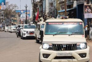 रामनवमी शोभायात्रा के मद्देनज़र जिले में शांति, सुरक्षा एवं कानून-व्यवस्था को सुदृढ़ बनाए रखने के उद्देश्य से पुलिस अधीक्षक धमतरी के नेतृत्व में पुलिस एवं प्रशासन द्वारा जिला मुख्यालय सहित संवेदनशील क्षेत्रों में भव्य संयुक्त फ्लैग मार्च निकाला गया।