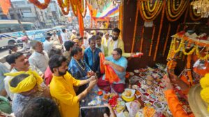हनुमान जन्मोत्सव मे महाआरती के साथ भंडारा मे शामिल हुए धर्म प्रेमी समाजसेवी पंडित राजेश शर्मा