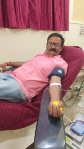 राष्ट्रीय स्वयंसेवक संघ छत्तीसगढ़ प्रांत सह सेवा प्रमुख मोहन लाल साहू ने जरुरतमंद महिला क़े लिए किया रक्तदान