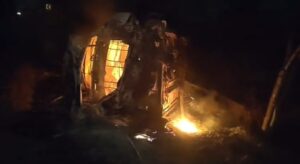 अनियंत्रित होकर पलटी कार,कई घंटो बाद लगी अचानक आग