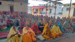 बकली में आयोजित श्रीमद् भागवत कथा का श्रवण करने पहुंचे पूर्व विधायक लेखराम साहू