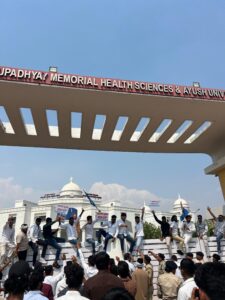 छात्र संघ चुनाव की बहाली के लिए आयुष विश्वविद्यालय का जंगी घेराव, एनएसयूआई ने किया आंदोलन का शंखनाद