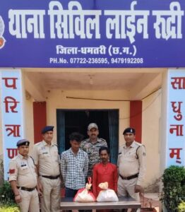 थाना रूद्री को मुखबिर से सूचना अवैध महुआ शराब बिक्री दो आरोपी गिरफ्तार,12 लीटर देशी महुआ शराब व स्कूटी जप्त हुई कि गंगरेल डेम पुल के पास दो व्यक्ति स्कूटी में अवैध रूप से देशी महुआ शराब बिक्री हेतु ले जा रहे हैं।सूचना पर त्वरित कार्यवाही करते हुए रूद्री पुलिस टीम द्वारा बताए गए स्थान पर पहुंचकर घेराबंदी की गई। मौके पर दो स्कूटी सवार व्यक्तियों को रोककर पूछताछ की गई, जिनके कब्जे से स्कूटी में अवैध रूप से रखी देशी महुआ शराब बरामद हुई। गवाहों के समक्ष कार्यवाही के दौरान आरोपियों को रंगे हाथ पकड़ा गया।आरोपीगण के विरुद्ध थाना रूद्री में धारा 34(2) आबकारी एक्ट के तहत अपराध पंजीबद्ध कर उन्हें न्यायिक रिमांड पर जेल भेजा गया।आरोपीगण के नाम कमल देव मरकाम, पिता रघुनाथ मरकाम, 20 वर्ष, निवासी ग्राम बोरिदखुर्द, थाना रूद्री, चुम्मन लाल नेताम, पिता स्व. तिहारु राम मरकाम, 45 वर्ष, निवासी ग्राम कोटरवाही, थाना मगरलोड, है.आरोपियों से प्लास्टिक झिल्ली में 18 पैकेट देशी महुआ शराब (करीब 12 लीटर) कीमती लगभग 2400 रूपये एवं एक स्कूटी कीमती लगभग 25,000 रूपये सहित कुल जुमला 27,400 रूपये जप्त किया गया है.