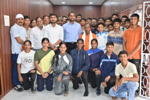 धमतरी-कलेक्टर अबिनाश मिश्रा से रेस्ट हाउस में हाल ही में नेशनल गेम्स में भाग लेने वाले खिलाड़ियों ने सौजन्य मुलाक़ात की । कलेक्टर श्री मिश्रा ने खिलाड़ियों को बधाई देते हुए उनके उत्कृष्ट प्रदर्शन की सराहना की और उन्हें सम्मानित किया। उन्होंने कहा कि जिले में खेल संस्कृति को मजबूत बनाने के लिए प्रशिक्षण शिविर, प्रतियोगिताएं और आवश्यक संसाधनों की उपलब्धता सुनिश्चित की जाएगी।