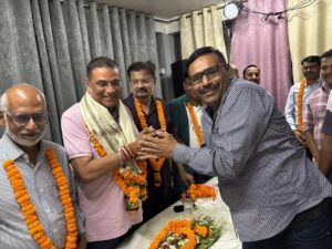 धमतरी। शहर के प्रसिद्ध दवा व्यवसायी सांसद प्रतिनिधि नीरज नाहर ने छत्तीसगढ़ केमिस्ट एवं ड्रगिस्ट संगठन के नवनिर्वाचित प्रदेश अध्यक्ष राकेश शर्मा, प्रदेश उपाध्यक्ष राजेश साहू एवं प्रदेश संगठन सचिव सुरेश शर्मा की प्रचंड जीत के बाद प्रथम धमतरी नगर आगमन पर स्वागत कर नवीन कार्यकाल की शुभकामनाएँ दी।