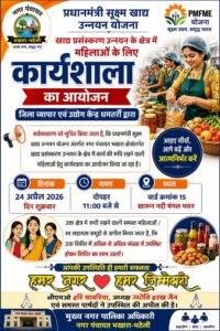 भखारा। नगर पंचायत भखारा-भठेली क्षेत्र में महिलाओं को आत्मनिर्भर बनाने एवं स्वरोजगार के अवसर उपलब्ध कराने के उद्देश्य से प्रधानमंत्री सूक्ष्म खाद्य उन्नयन योजना के अंतर्गत विशेष कार्यशाला का आयोजन किया जा रहा है। यह कार्यशाला जिला व्यापार एवं उद्योग केन्द्र, धमतरी द्वारा आयोजित की जा रही है।24 अप्रैल दोपहर 11 बजे से वार्ड क्रमांक 15, खारून नदी मंगल भवन मे होगा. इस कार्यशाला में खाद्य प्रसंस्करण के क्षेत्र में रुचि रखने वाली महिलाओं एवं स्व सहायता समूहों को विभिन्न प्रकार के प्रशिक्षण, सरकारी योजनाओं की जानकारी तथा स्वरोजगार स्थापित करने के लिए मार्गदर्शन प्रदान किया जाएगा। इससे महिलाओं को आर्थिक रूप से सशक्त बनने का अवसर मिलेगा। मुख्य नगर पालिका अधिकारी हरि पावरिया, अध्यक्ष ज्योति हरख जैन एवं समस्त पार्षदों ने क्षेत्र की सभी महिलाओं एवं स्व सहायता समूहों से अपील की है कि वे अधिक से अधिक संख्या में उपस्थित होकर इस कार्यशाला का लाभ उठाएं। यह पहल महिलाओं को आत्मनिर्भर बनाने और स्थानीय स्तर पर रोजगार सृजन को बढ़ावा देने की दिशा में एक महत्वपूर्ण कदम साबित होगी।