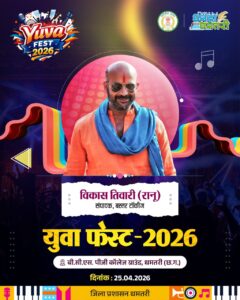 धमतरी, यूथ फेस्ट 2026 में कार्यक्रम कार्यक्रम में मुख्य वक्ता के रूप में शामिल होने वाले वरिष्ठ पत्रकार सौरभ द्विवेदी के आज 26 अप्रैल को शाम4 बजे पीजी कॉलेज परिसर में आयोजित किया जाएगा।